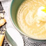 Schenk ½ liter water in de pan, breng aan de kook en laat de soep zachtjes pruttelen tot de knolselderij goed gaar en zacht is.